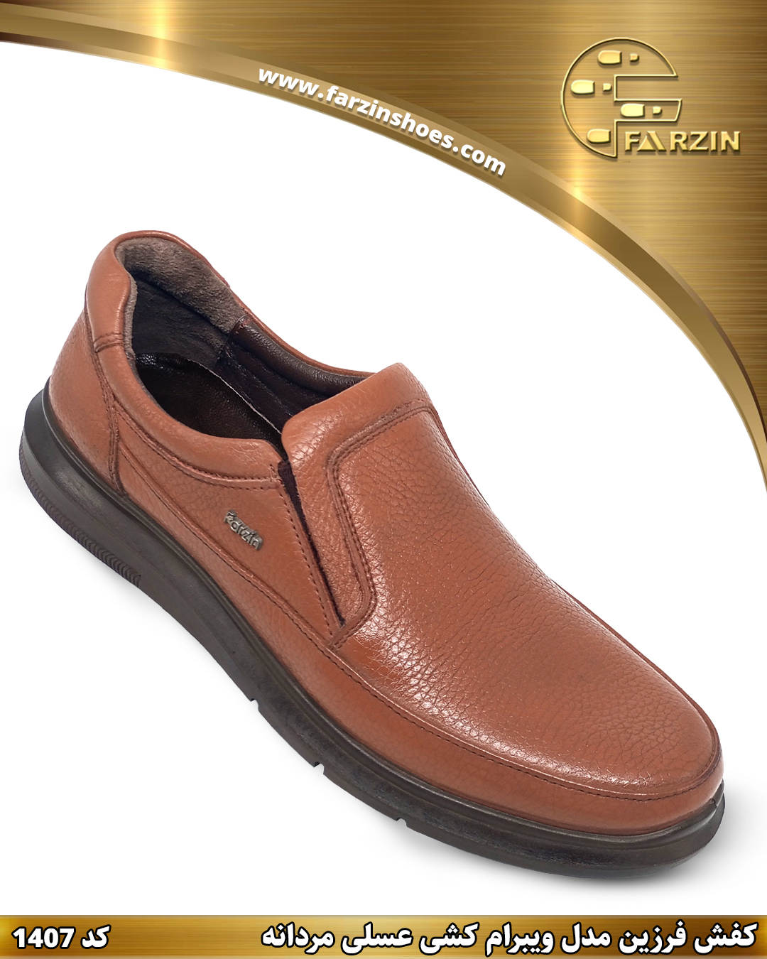 کفش فرزین مدل ویبرام کشی عسلی مردانه کد 1407