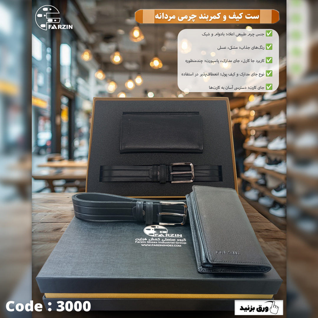 - شامل دو تکه: کیف پول و کمربند
