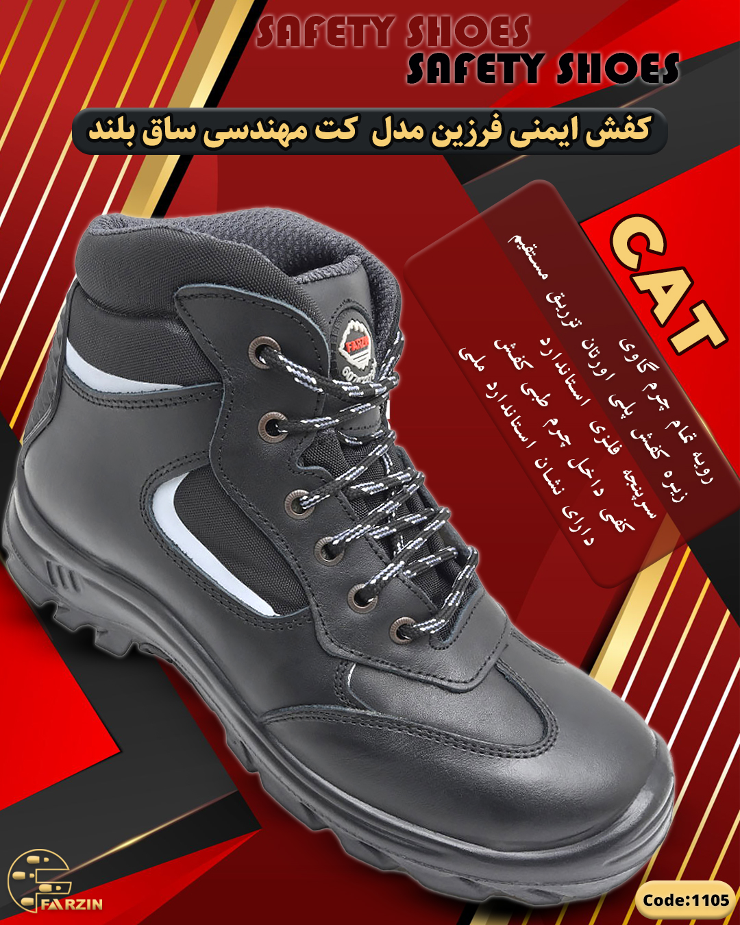 کفش ایمنی فرزین مدل کت مهندسی ساق بلند کد 1105