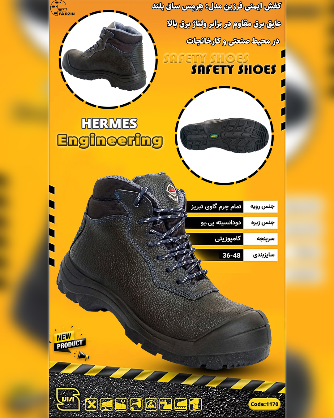 • کفش ایمنی فرزین مدل هرمس ساق بلند عایق برق کد 1170A