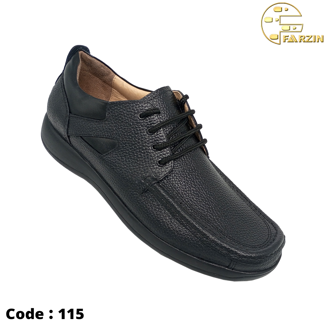 رویه محصول چرم طبیعی تهیه شده از پوست گاو می باشد که قابلیت تنفس داشته و از تعریق و بوی بد پا جلوگیری می کند. کفی طبی کفش به نحوی طراحی شده که فشار واردشده به پا در راه رفتن و ایستادن به صورت یکسان بر کف پا وارد گردد و در نتیجه از خستگی و کمردرد پیشگیری می شود. زیره ی این کفش ساخت کشور ایتالیا و از جنس PU (پلی یورتان) می باشد در نتیجه بسیار سبک و منعطف و مناسب استفاده در محل کار و … می باشد.