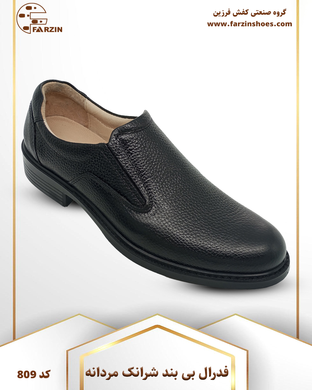 کفش فرزین مدل فدرال شیرانک بی بند مشکی مردانه کد ۸۰۹
