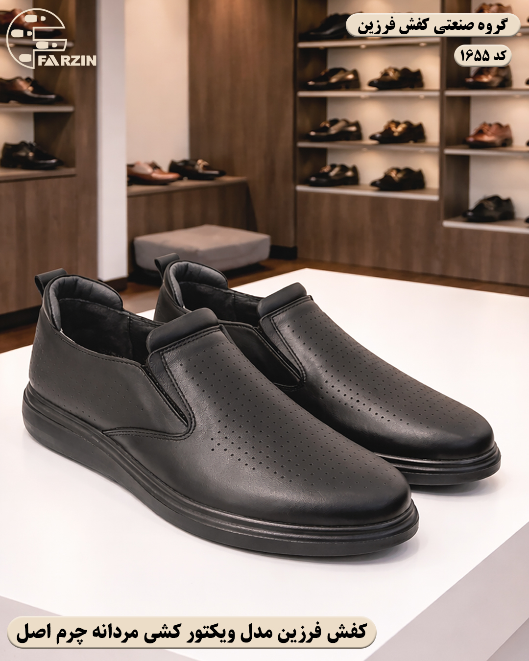 کفش فرزین مدل ویکتور کشی مردانه مشکی کد 1655 | چرم میلینگ گاوی تبریز