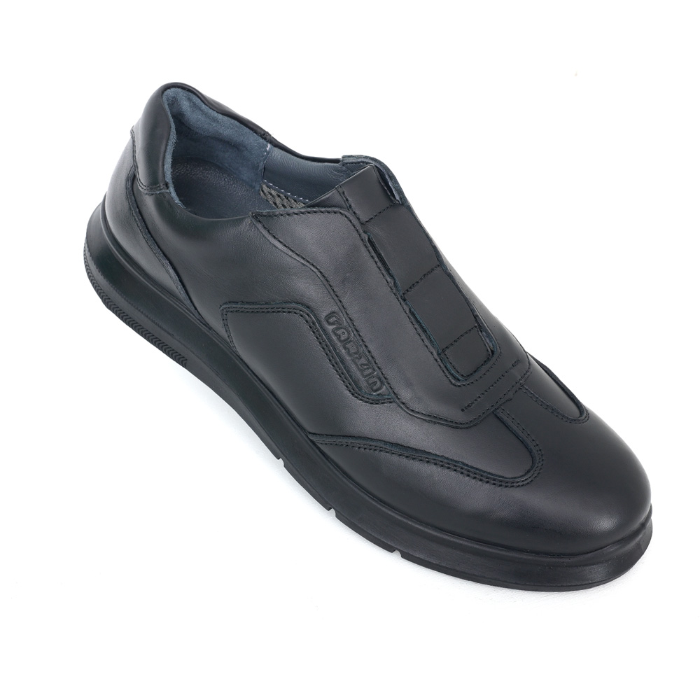 کفش مردانه ولکان مدل 1645 با طراحی کشی و رنگ مشکی، مناسب استفاده روزمره و پیادهروی است.